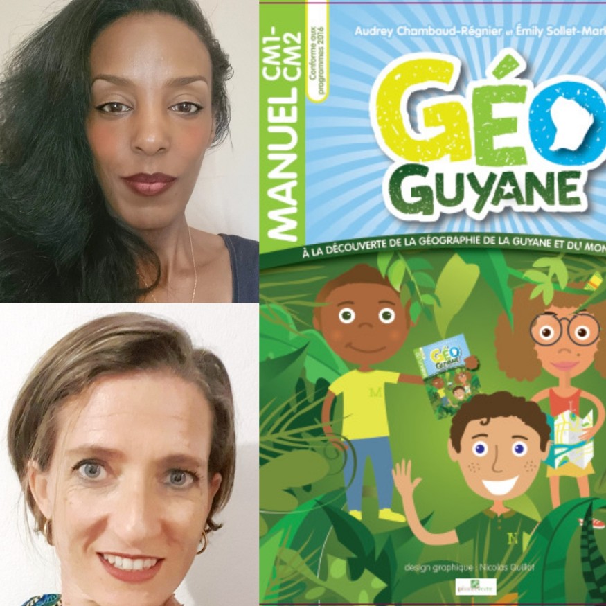 Audrey Chambaud-Régnie, quant à elle, a poursuivi ses études supérieures en droit privé, puis en sciences de l’éducation à l’université des Antilles-Guyane, de Paris XII et Bordeaux IV et à l’Université de Guyane. Son parcours professionnel au sein de l’Éducation nationale démarre en 2007, elle passe le concours de Professeure des écoles en 2010, puis la certification pour devenir formatrice (CAFIPEMF) en 2015. C’est durant cette même année que prend naissance le projet d’écrire un manuel pédagogique de géographie adapté à la Guyane. Elle est actuellement doctorante au sein de l’Université de Guyane en sciences de l’éducation. Son sujet de thèse porte sur l’adaptation de l’enseignement de la géographie, traitant à la fois des enjeux des outils et de pratiques pédagogiques des enseignants afin de repérer les leviers et les obstacles à cette adaptation.
