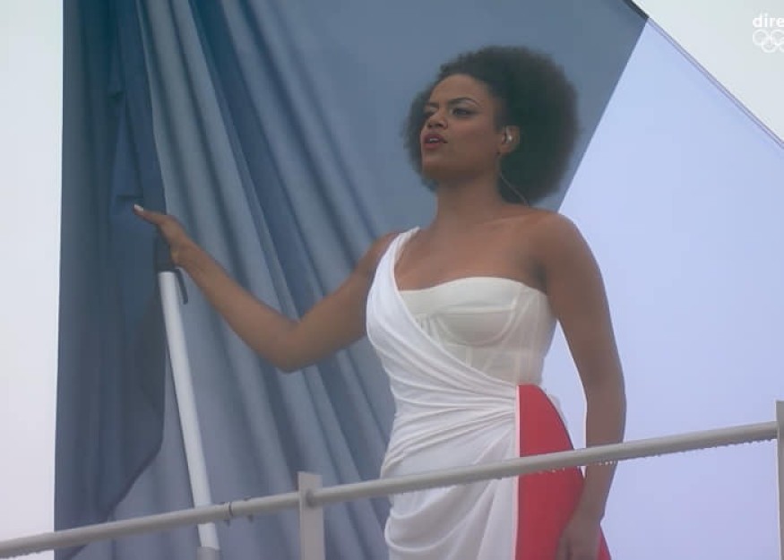Drapée dans une robe aux couleurs du drapeau français, la chanteuse lyrique de 28 ans s'est produite depuis le toît du Grand Palais. Une consécration pour cette jeune artiste au parcours d'excellence.