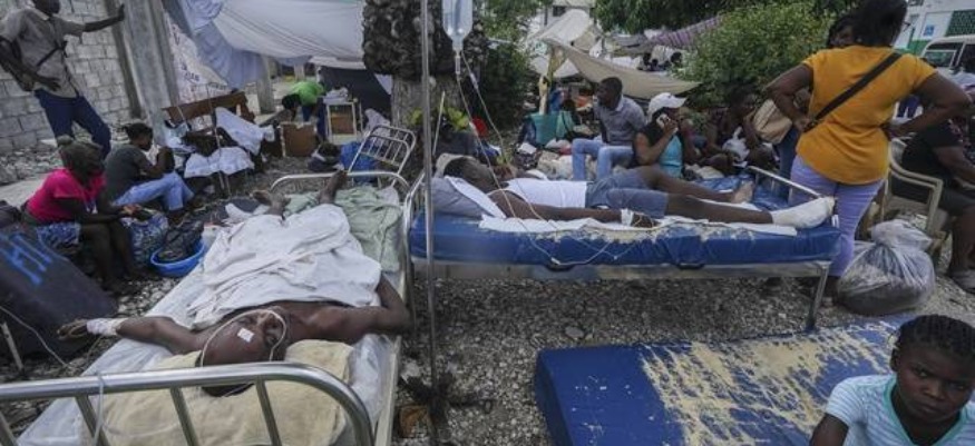 Dans la petite ville balnéaire de Port-Salut comme dans le reste des régions affectées, les habitants faisaient lundi face à un dilemme : rester dehors pour se protéger des répliques ou rentrer dans des bâtiments endommagés pour s’abriter des fortes intempéries attendues. L’hôpital de la ville a tranché : il faut essayer de protéger les patients qui s’entassent dans la cour, sous des bâches en plastique, depuis le tremblement de terre. En milieu de journée lundi, les malades ont été transférés vers l’intérieur de l’établissement malgré la crainte de répliques.