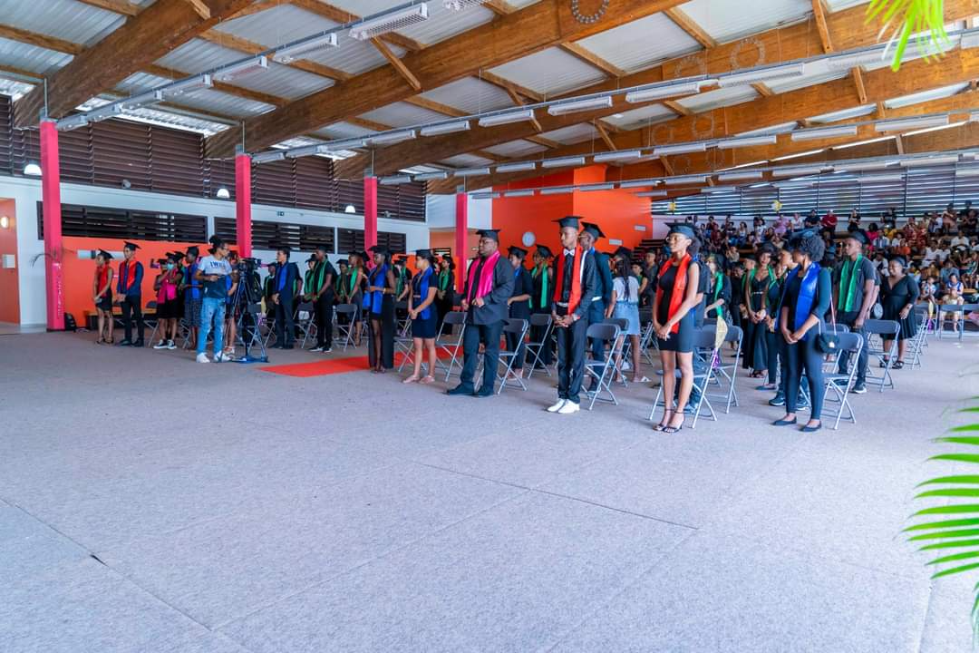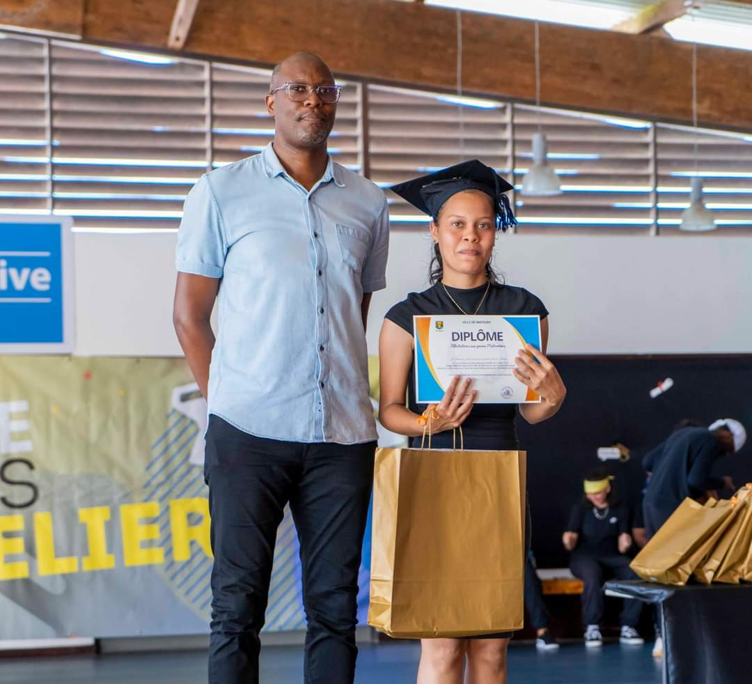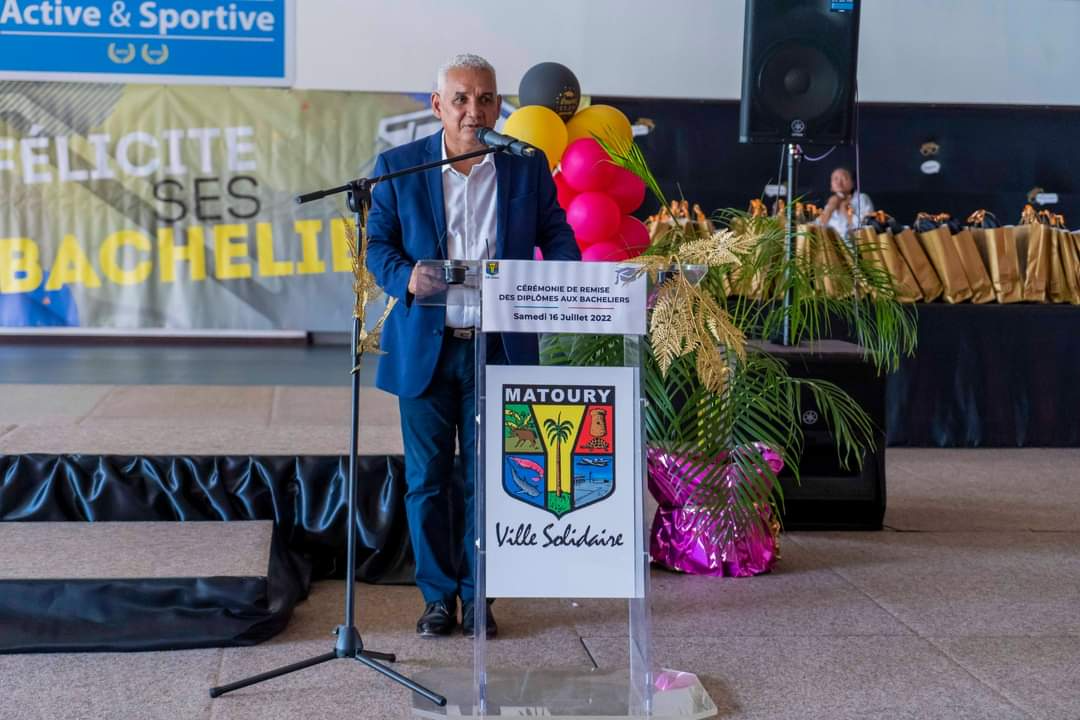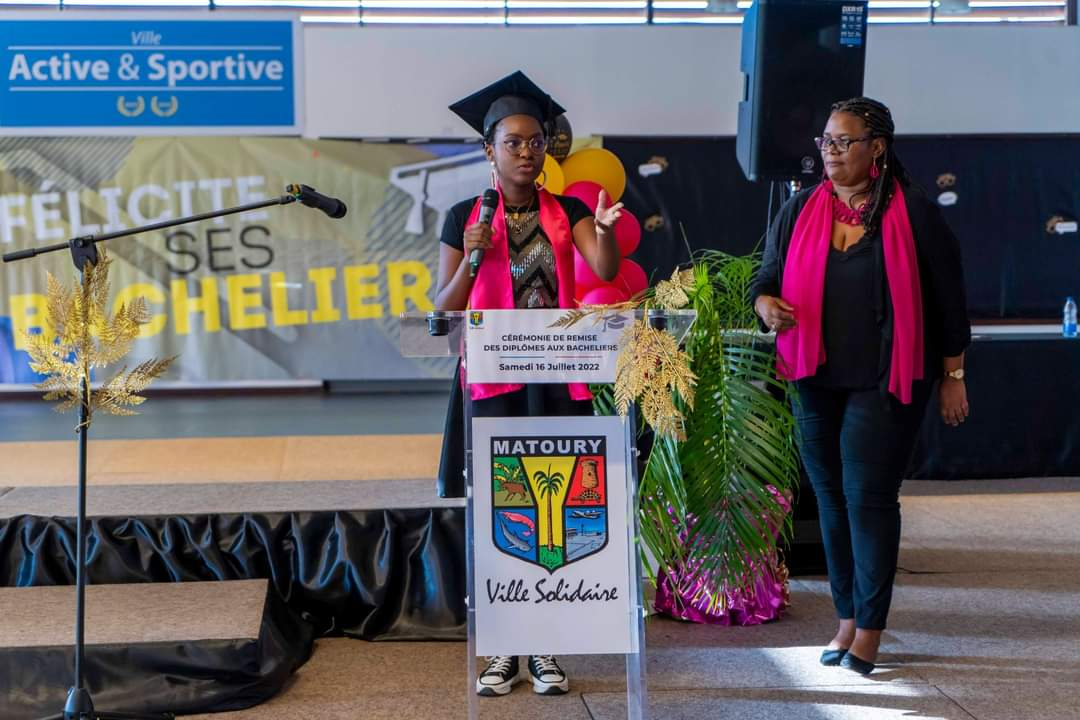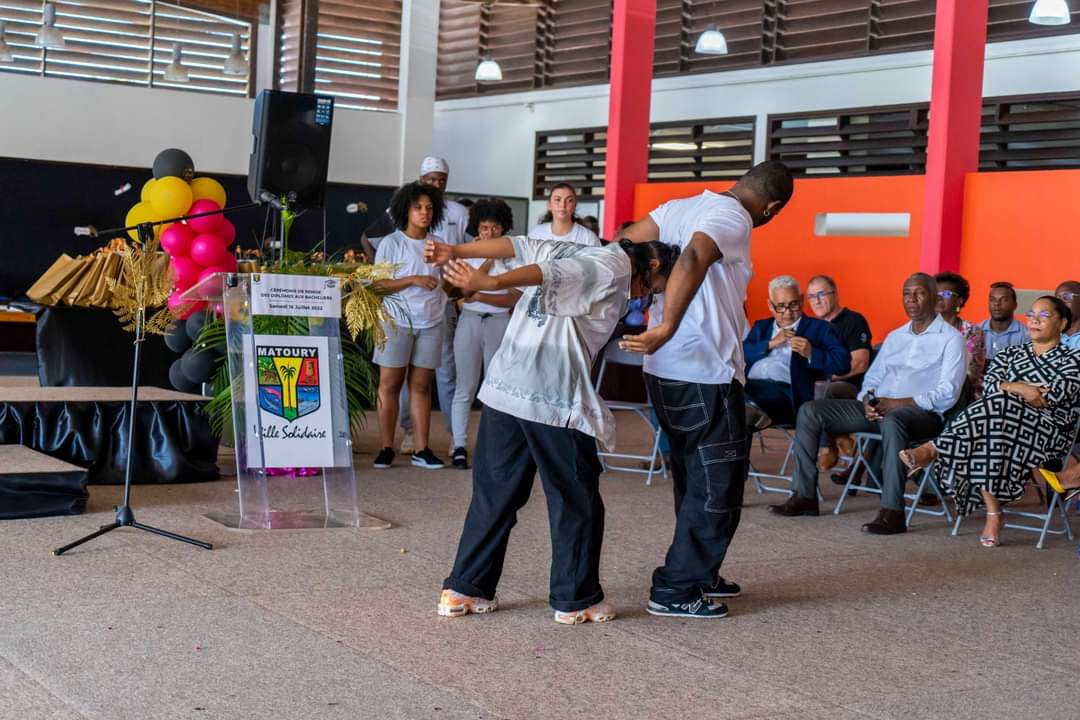 La journée du samedi 16 juillet 2022 a été rythmée par l’appel du nom des bacheliers dans la Maison des Arts Martiaux. Au cours d’une cérémonie solennelle, 120 bacheliers ont reçu, un à un, leur diplôme accompagné d’un cadeau des mains des élus municipaux, territoriaux et représentants du Rectorat. L’occasion également d’honorer des étudiants au parcours atypique et de rendre hommage aux parents, premiers acteurs de la réussite des élèves. Un moment marqué par une grande émotion. La cérémonie a été animée par la troupe Touka Danses et s’est clôturée en liesse par le traditionnel lancer de toques dans ambiance survoltée assurée par le groupe Mayouri Tchô Neg. #VilledeMatoury #bachelier #récompense #mayouricampus