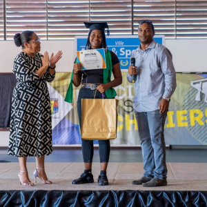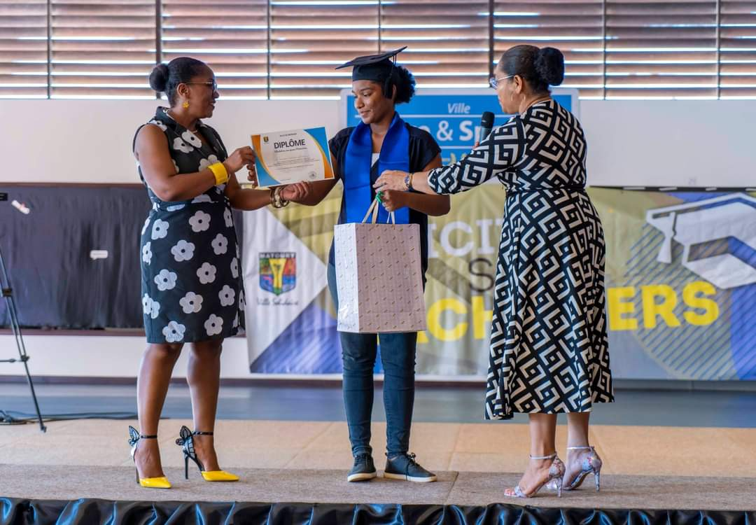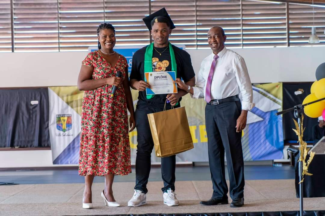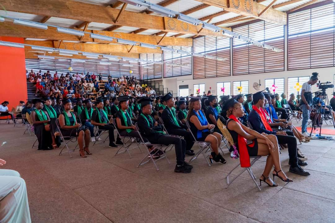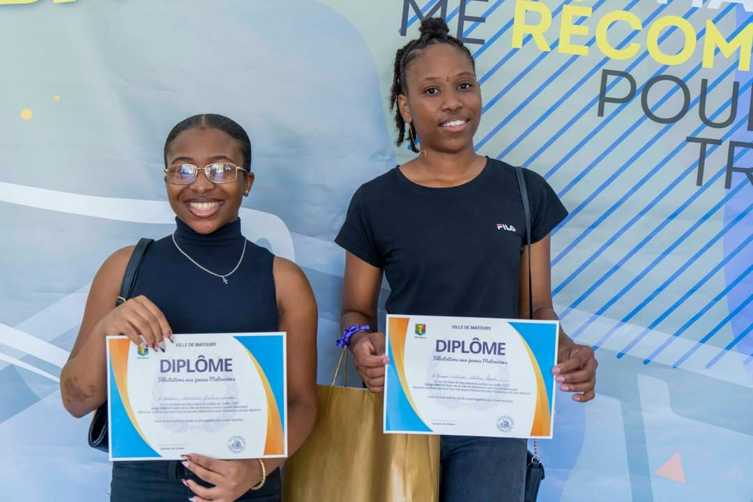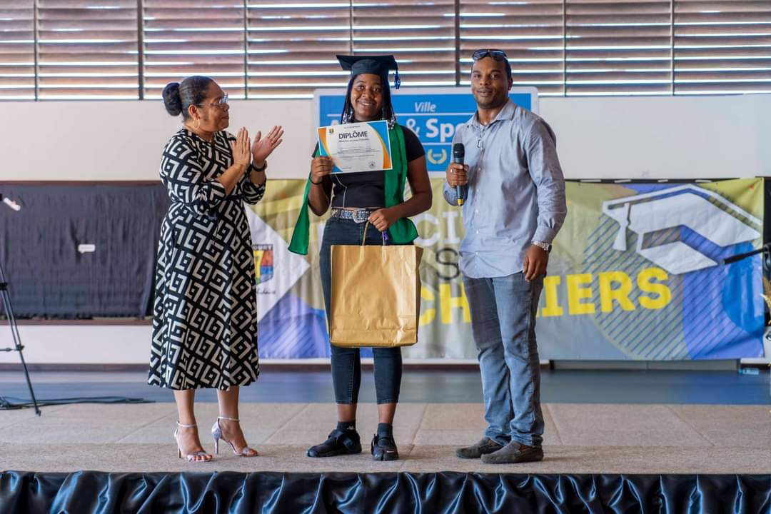 La journée du samedi 16 juillet 2022 a été rythmée par l’appel du nom des bacheliers dans la Maison des Arts Martiaux. Au cours d’une cérémonie solennelle, 120 bacheliers ont reçu, un à un, leur diplôme accompagné d’un cadeau des mains des élus municipaux, territoriaux et représentants du Rectorat. L’occasion également d’honorer des étudiants au parcours atypique et de rendre hommage aux parents, premiers acteurs de la réussite des élèves. Un moment marqué par une grande émotion. La cérémonie a été animée par la troupe Touka Danses et s’est clôturée en liesse par le traditionnel lancer de toques dans ambiance survoltée assurée par le groupe Mayouri Tchô Neg. #VilledeMatoury #bachelier #récompense #mayouricampus